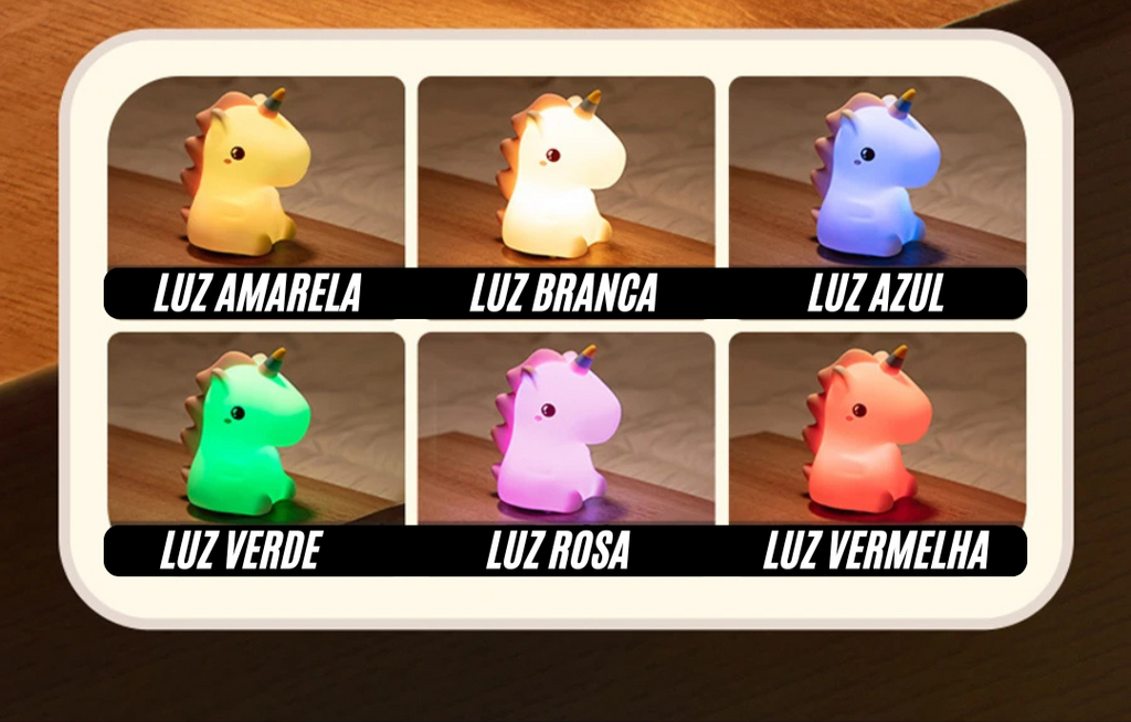 🦄 Unicórnio Camaleão 7 Cores - Sensível ao Toque - Recarregável Tipo C.🔋